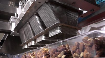 Device to collect the weighments from the scale and to load the plastic container