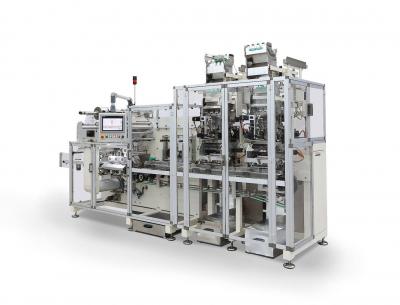 Confezionatrice orizzontale (doppia testa di pesatura G12) continua ad alta velocità per spaghettame in sacchetti formati da bobina di film plastico accoppiato.