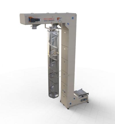Sistemi automatici di trasporto a tazze in ABS e/o in acciaio inox e alimentazione di gruppi di confezionamento